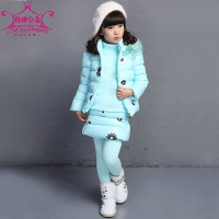 女童秋装套装2017新款棉衣冬装加绒三件套时髦洋气女孩棉服儿童装