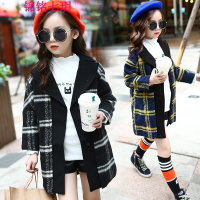 锦铭七玥童装女童呢子大衣秋冬装2017新品中大童韩版格子连帽毛呢加厚外套
