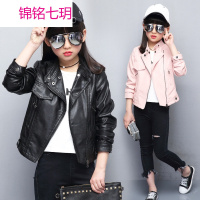 锦铭七玥女童皮衣外套2017款春冬装短款外套黑色PU夹克新款-