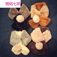 锦铭七玥新款儿童球球交叉围脖男女童可爱毛绒绒保暖围巾
