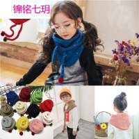 锦铭七玥2018秋冬新款豆豆流苏儿童围巾男女童宝宝围脖百搭棉麻三角巾批发
