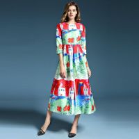 默蒂梵时装走秀款秋季童趣卡通数码印花收腰长袖中长连衣裙图片色