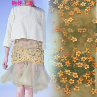 锦铭七玥2018春夏时装连衣裙面料3d立体小花定位花网布重工艺刺绣蕾丝