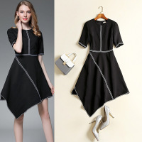 春夏新款巴黎时装周 杨紫明星黑色百边不规则修身连衣裙