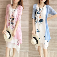 大码女装新款2018夏装套装棉麻短袖连衣裙女两件套装