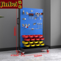 锦北五金工具货架车间螺丝收纳洞洞板展示架移动置物架双面三层移动款