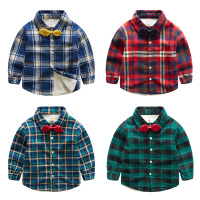 宝宝加绒格子衬衫男2017冬季新款儿童保暖童装男童带领结长袖衬衣