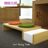 实木猫餐桌陶瓷碗防滑实木猫碗架宠物碗餐桌狗碗陶瓷碗