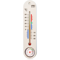 得力9013挂壁式温度计/室内外温湿度计家用大棚精准水银