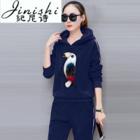 纪尼诗女装2018冬季新款加绒加厚运动休闲套装女冬装韩版时尚潮金丝绒两件套544