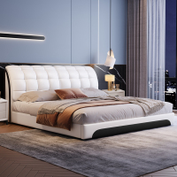 意式极简真皮悬浮床现代极简主卧泡芙软包榻榻米床黑色豆