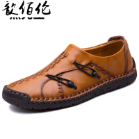 路蒙卡帝2017秋季新款男鞋休闲皮鞋男韩版百搭潮鞋真皮软底手工棕色鞋子男