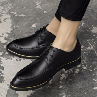秋季商务正装休闲皮鞋男英伦韩版青年真皮尖头黑色婚鞋潮增高男鞋