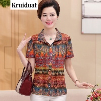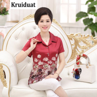 Kruidvat短袖修身翻领妈妈装开衫短袖衬衫中年T恤Z010