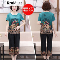 Kruidvat休闲套装大码短袖T恤+七分裤两件套中年人Z029