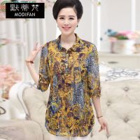 中老年女装春装雪纺衫上衣妈妈装夏装中袖衬衫中年七分袖打底衫女