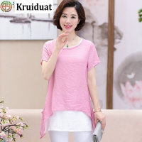 Kruidvat2017夏装新款中老年妈妈装中长款棉麻T恤40-50中年大码女装上衣女
