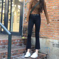 秋季韩版新款复古百搭黑色微喇叭裤高腰修身显瘦毛边九分牛仔裤女