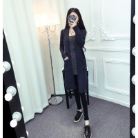 秋季韩版新款时尚宽松百搭纯色收腰显瘦加厚中长款针织开衫外套女