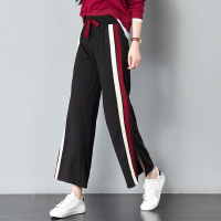 高腰阔腿裤直筒条纹裤女九分裤开叉喇叭休闲裤学生校服裤