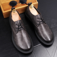 英伦男士圆头真皮青年内增高鞋商务工装鞋子韩版厚底系带休闲皮鞋