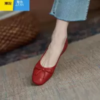 聚范蝴蝶结皮小红鞋新款百搭方头软底红色平底女鞋浅口低跟单鞋