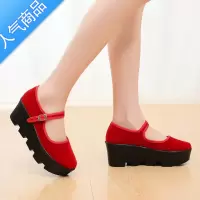 SUNTEK新款厚底工作鞋老北京布鞋高跟广场舞鞋舒适防滑黑坡跟女厨房工鞋