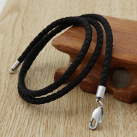 纯银扣黑色皮绳项链绳子挂件绳挂坠绳男女款戒指玉佩黄金吊坠挂绳_3