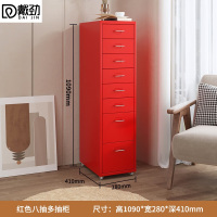 戴劲钢制文件柜带轮多抽档案柜资料柜铁皮办公柜家用储物柜红色八抽