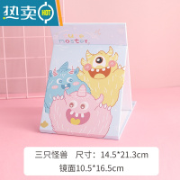 敬平台式化妆镜桌面可立大号折叠小镜子女便携宿舍学生纸镜随身梳妆镜 褐色 三只怪兽便携式用镜