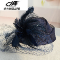 亚麻帽子夏女韩版麻纱女士百搭宴会小礼帽羽毛网纱贝雷帽空姐帽潮
