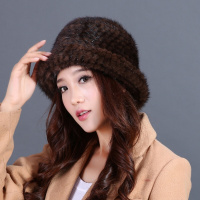 冬季新款水貂帽子保暖水貂毛中老年皮草礼帽冬天妈妈编织盆帽女士咖啡色可调节