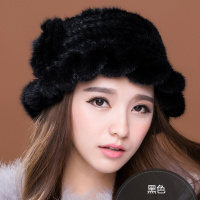 年冬季新品水貂毛皮帽子保暖帽中老年人礼帽妈妈帽水貂帽子女黑色均码有弹性