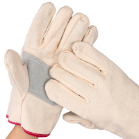 邦能之星双层加厚劳保帆布手套复合铁路耐磨加皮电焊车间工地手套N52244