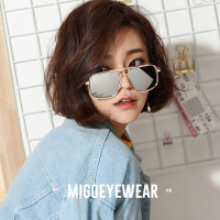 眼镜时尚潮流反光镀膜镜面太阳镜潮流个性女士可爱圆框墨镜