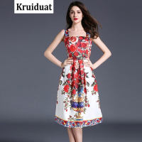 Kruidvat2017夏季新款欧美女装印花吊带中长款修身连衣裙ZY图片色