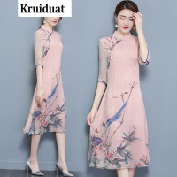 Kruidvat旗袍丝绸中式长款时尚旗袍连衣裙女2017夏季FZ图片色