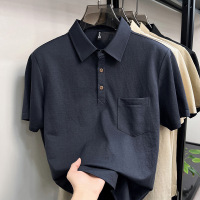春夏季新款男士长绒棉纯色翻领短袖T恤青年舒适轻薄透气凉感