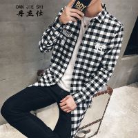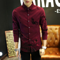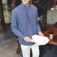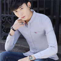 春季新款长袖衬衫男士韩版修身复古纯色休闲潮流工装衬衣
