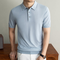 高端冰桑蚕丝体恤衫冰丝polo衫男2024夏季商务翻领短袖t恤夏季男士短袖t恤桑蚕丝polo衫翻领半袖冰丝纯色休闲真丝