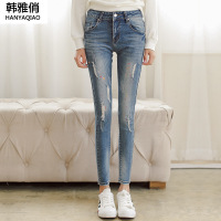 韩雅俏(HANYAQIAO)2018新品百搭显瘦弹力漆点修身小脚裤铅笔裤女