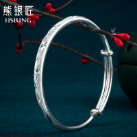 银手镯S999纯银手镯女款时尚满天星推拉银镯子银饰品送女友