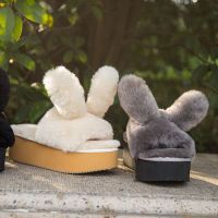 秋夏季居家厚底坡跟兔耳朵羊皮毛一体一字拖鞋女毛毛拖棉平底外穿