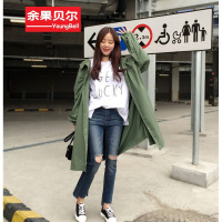 余果贝尔(YoungBell)余果贝尔((YoungBell))) 2016秋装新款韩版宽松蝙蝠袖连帽风衣女收腰中长款外