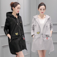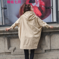 锦铭七玥18春装韩版女士宽松色显瘦长袖蝙蝠型连帽中长风衣外套班服