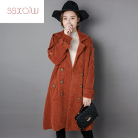 ssxoiw 长毛仿貂绒茧型风衣女2017冬装中长款西装领双排扣开衫加厚外套秋 焦糖色 M