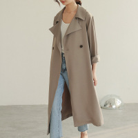 2018女装春季新款韩版女式风衣纯色直筒型双排扣外套