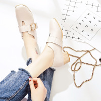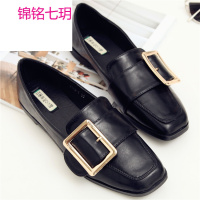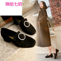 锦铭七玥皇姬2018春季新款方头圆扣粗跟单鞋女英伦复古低跟女低帮鞋套脚潮