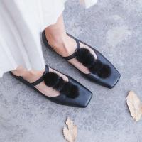 卡帝姗头层牛皮平跟浅口甜美豆豆鞋平底方头套脚低帮鞋女鞋 牛筋