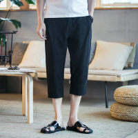夏季中国风男士休闲裤亚麻七分裤纯色大码百搭青年棉麻7分裤男裤